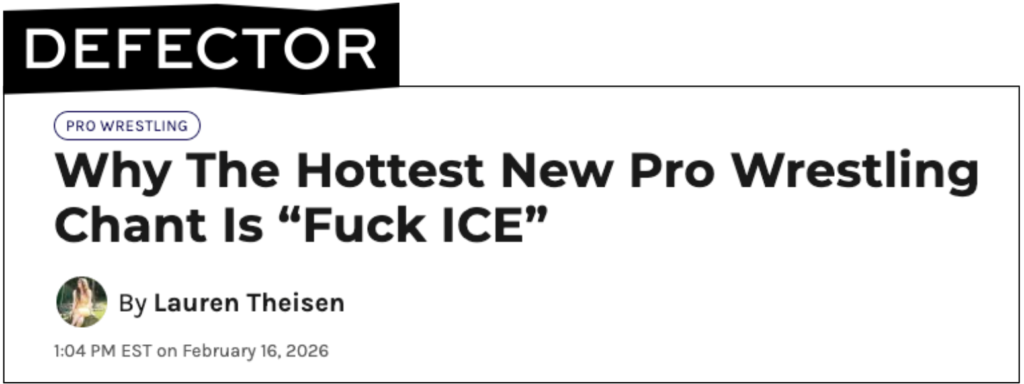 Another thing I should tell you about myself is that I love professional wrestling. It’s one of the most powerful storytelling mediums ever created — part theater, part ballet, part gladiatorial combat, part soap opera. The pageantry and spectacle are emotional and entertaining, but wrestling has also always been political — both in the ring and outside of it. Stories told through words and action. Media and entertainment, narrative and fandom — it’s all rolled up in the same small package. And if you don’t know anything about this world of wrestling and think it’s all silly costumes and choreographed fighting, it can certainly surprise you.